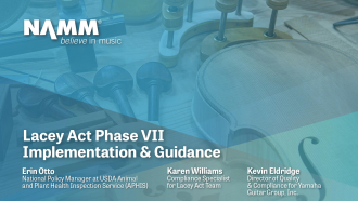 NAMM advocates on behalf of its members on regulatory and compliance issues that impact the music products and events industries. NAMM also educates on issues that affect profitability, including sustainability, taxation and employment.